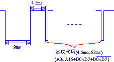 16位地址码的最短宽度:1.12×16=18ms 16位地址码的最长宽度:2.24ms×16=36ms